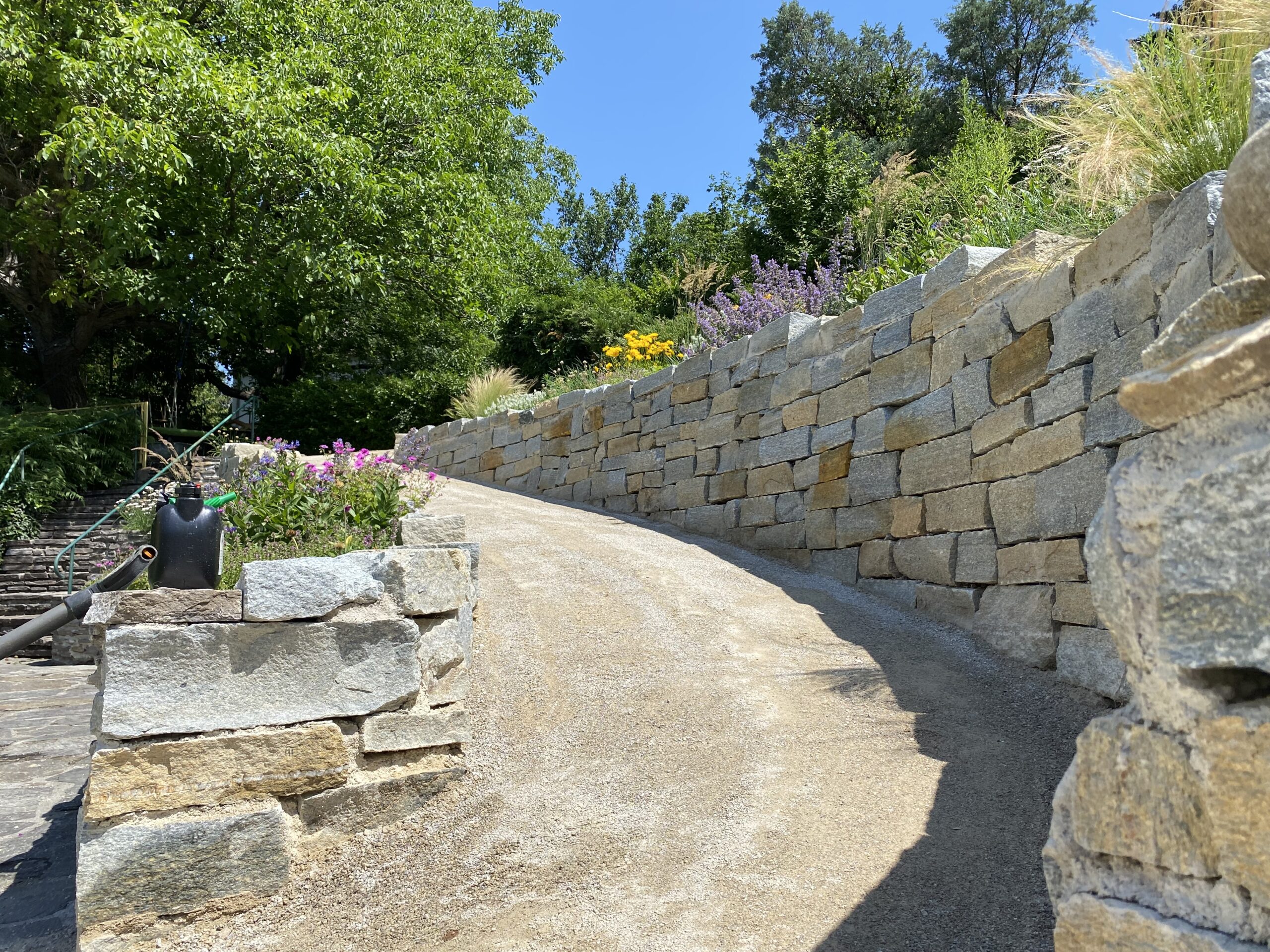 Auch Mauern finden sich auf vielfältige Art und Weise im Garten: Ob sie der Terrassierung eines Hanggartens dienen, als Sitzmauer zum Verweilen einladen oder als Zaunsockel Grenzen setzen – hochwertig angelegte Gartenmauern wirken nützlich und dekorativ.