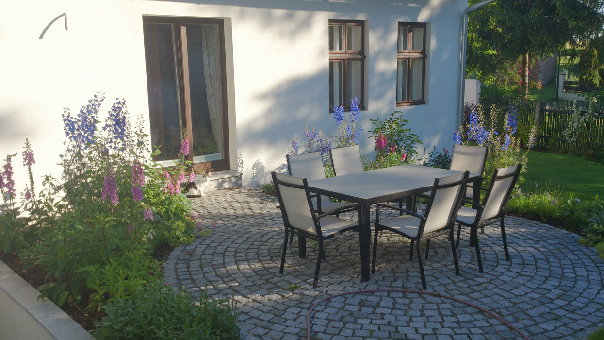 Wege, Plätze und Stiegenanlagen aus Stein stellen neben Ihrer Begehbarkeit auch wichtige Gestaltungselemente in der Gartenplanung dar.